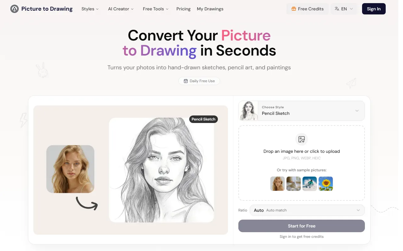 Whether you are a newcomer exploring AI tools for the first time or a veteran looking for a more efficient solution, Picture to Drawing has something to offer. The freemium model means you can start exploring at no cost and upgrade only if the value is clear, making it a low-risk proposition for anyone curious about AI-powered image generation and visual design. The worst that can happen is you discover a new approach to image generation and visual design that saves you significant time.