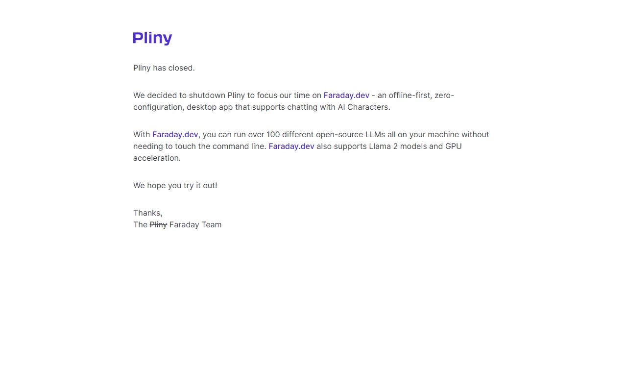 - Chat: With built-in chat capabilities, Pliny helps writers, marketers, and content creators tackle this aspect of their workflow head-on. The AI-driven approach ensures consistent, high-quality output every time while reducing manual effort significantly.