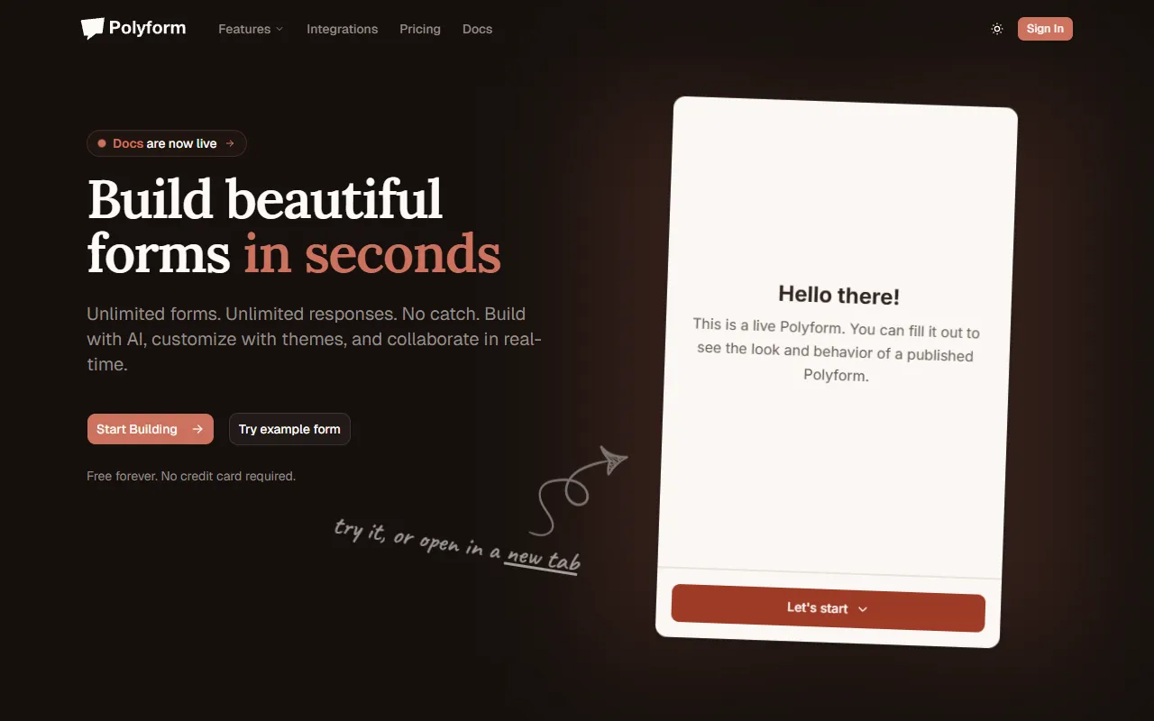 Polyform: AI-powered, customizable form builder with real-time collaboration, smart logic, and instant insights.