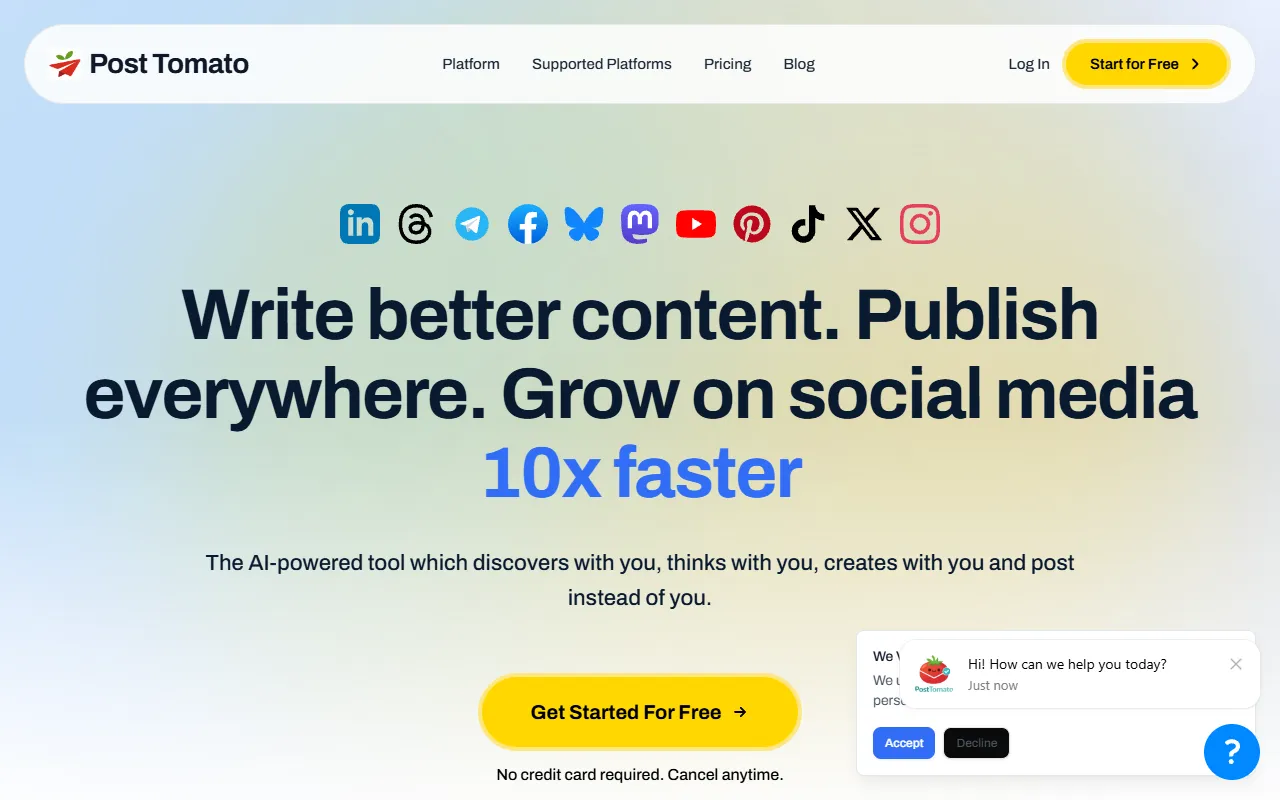 - Content marketing: Post Tomato provides robust content marketing functionality, allowing users to create with precision and efficiency. This feature is powered by advanced AI models that adapt to your specific use case and improve over time based on your interactions.