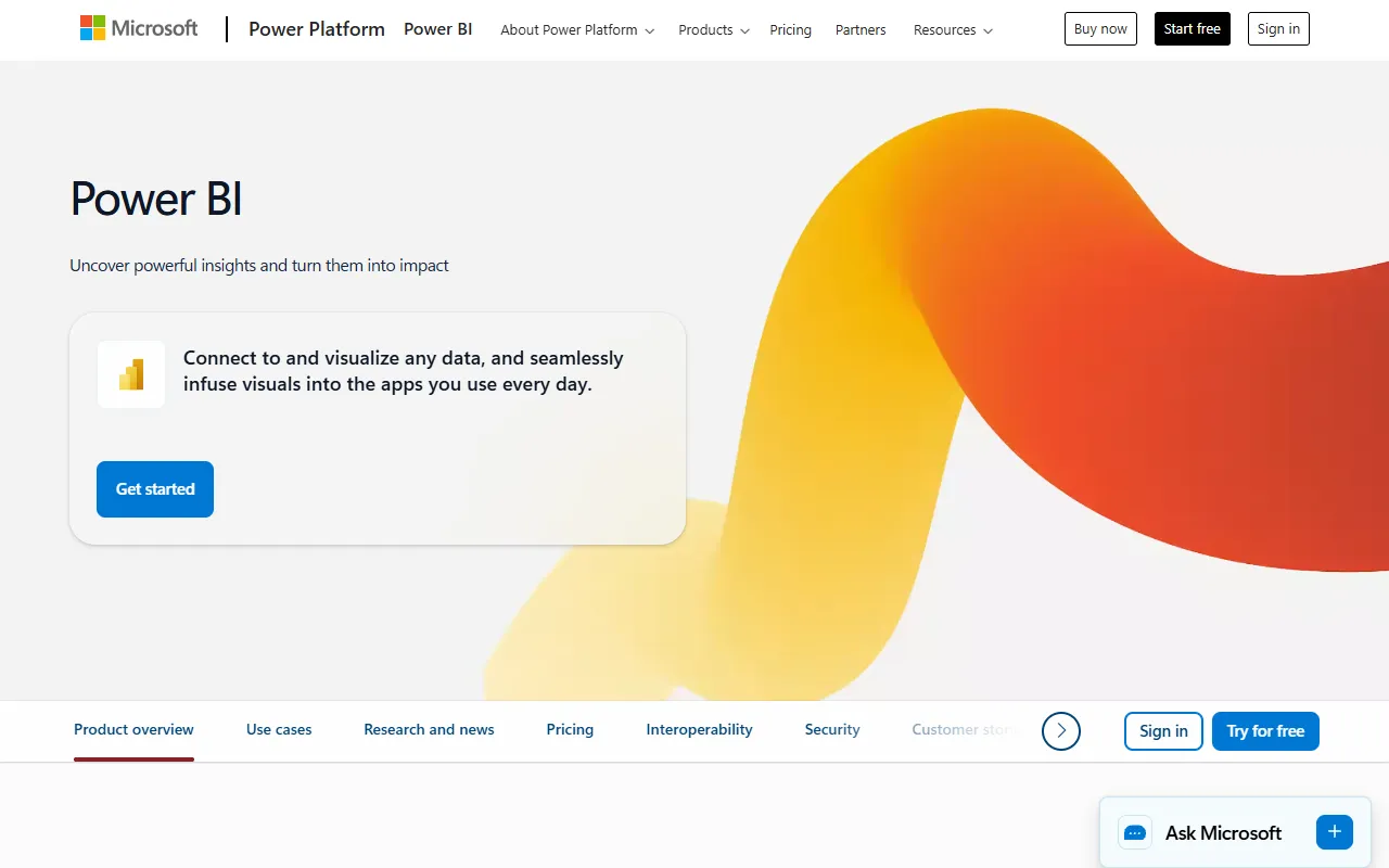 Microsoft AI-powered business analytics tool with Copilot integration for natural language insights.