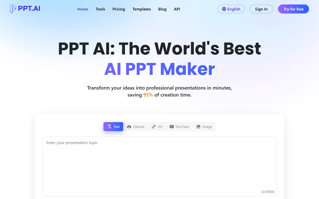 PPT AI instantly converts files into polished, multilingual presentations using advanced AI and free templates.