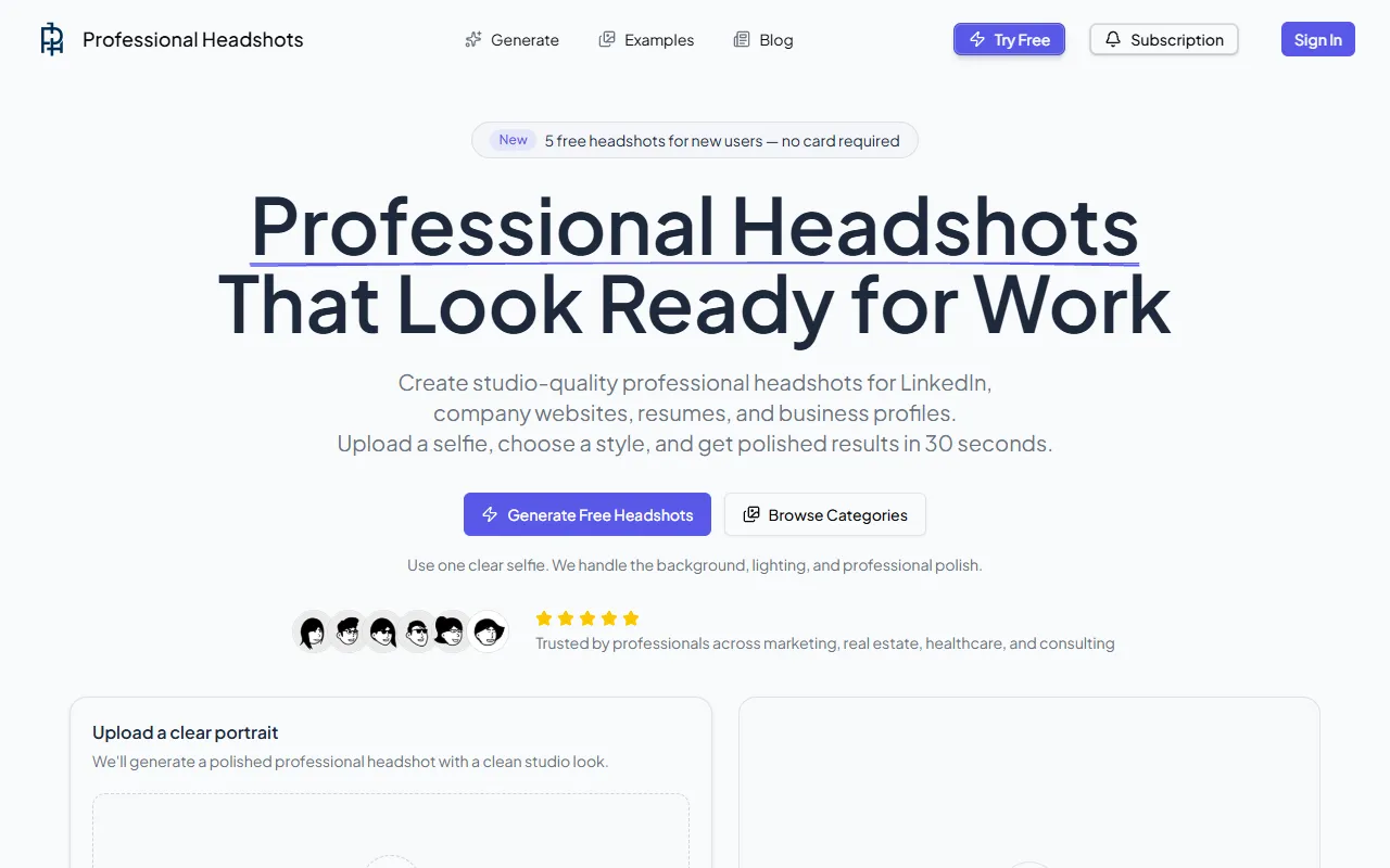 AI-powered platform creating high-quality professional headshots from a single selfie—fast, easy, affordable.