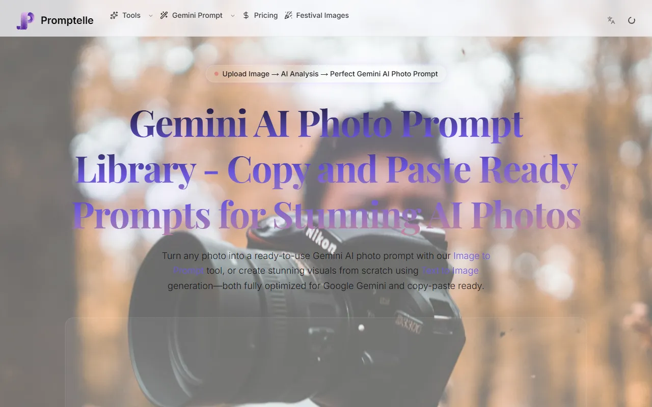 Promptelle offers ready-to-use AI image prompts and tools for effortless creative image generation.
