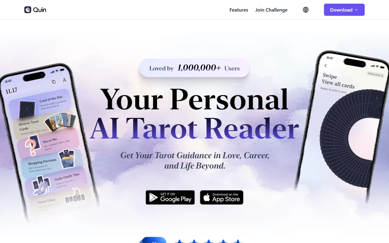 Quin’s AI tarot app delivers personalized insights for self-discovery and clarity in your journey.