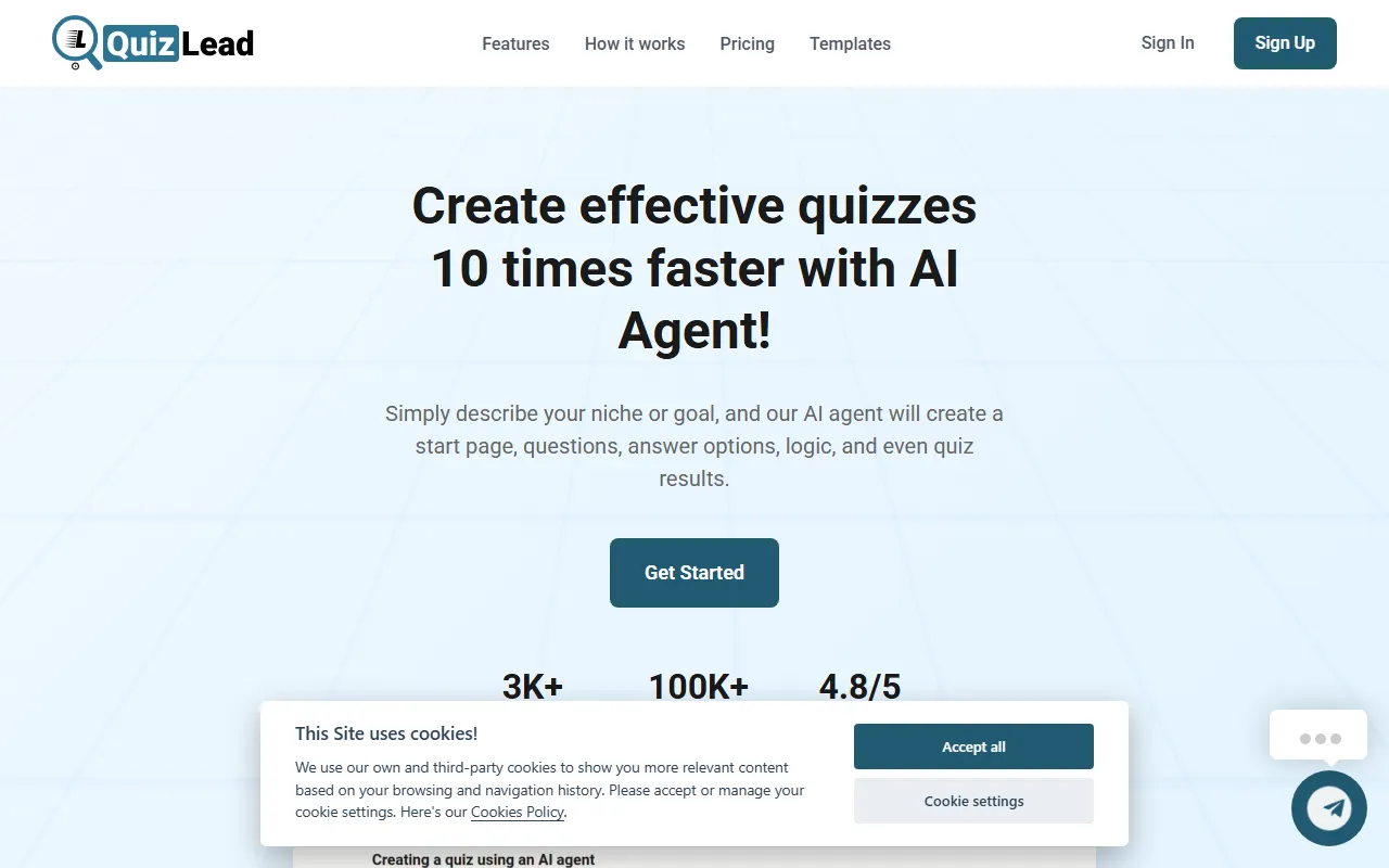 QuizLead creates personalized, branded quizzes with conditional logic, multi-language support, and mobile optimization.