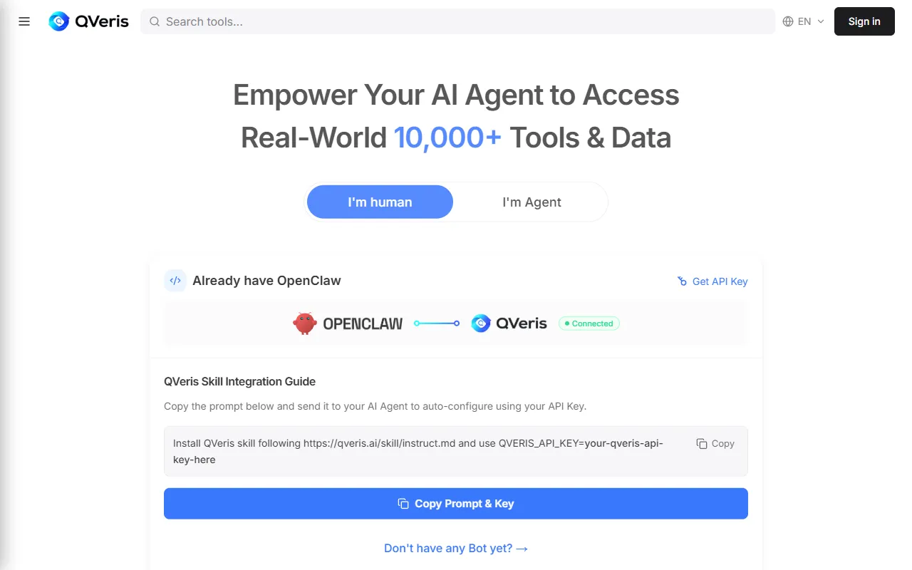 QVeris offers a unified API for scalable AI agents to access 10,000+ real-world tools and data.