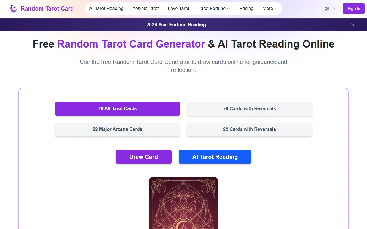 For professionals, teams, and everyday users seeking smarter ways to handle AI-powered assistance and automation, Random Tarot Card presents an intriguing proposition. RandomTarotCard.org offers AI-powered Tarot readings for personalized guidance, inspiration, and emotional support. The platform aims to bridge the gap between complex AI technology and practical, everyday utility, making advanced capabilities accessible without requiring deep technical expertise.