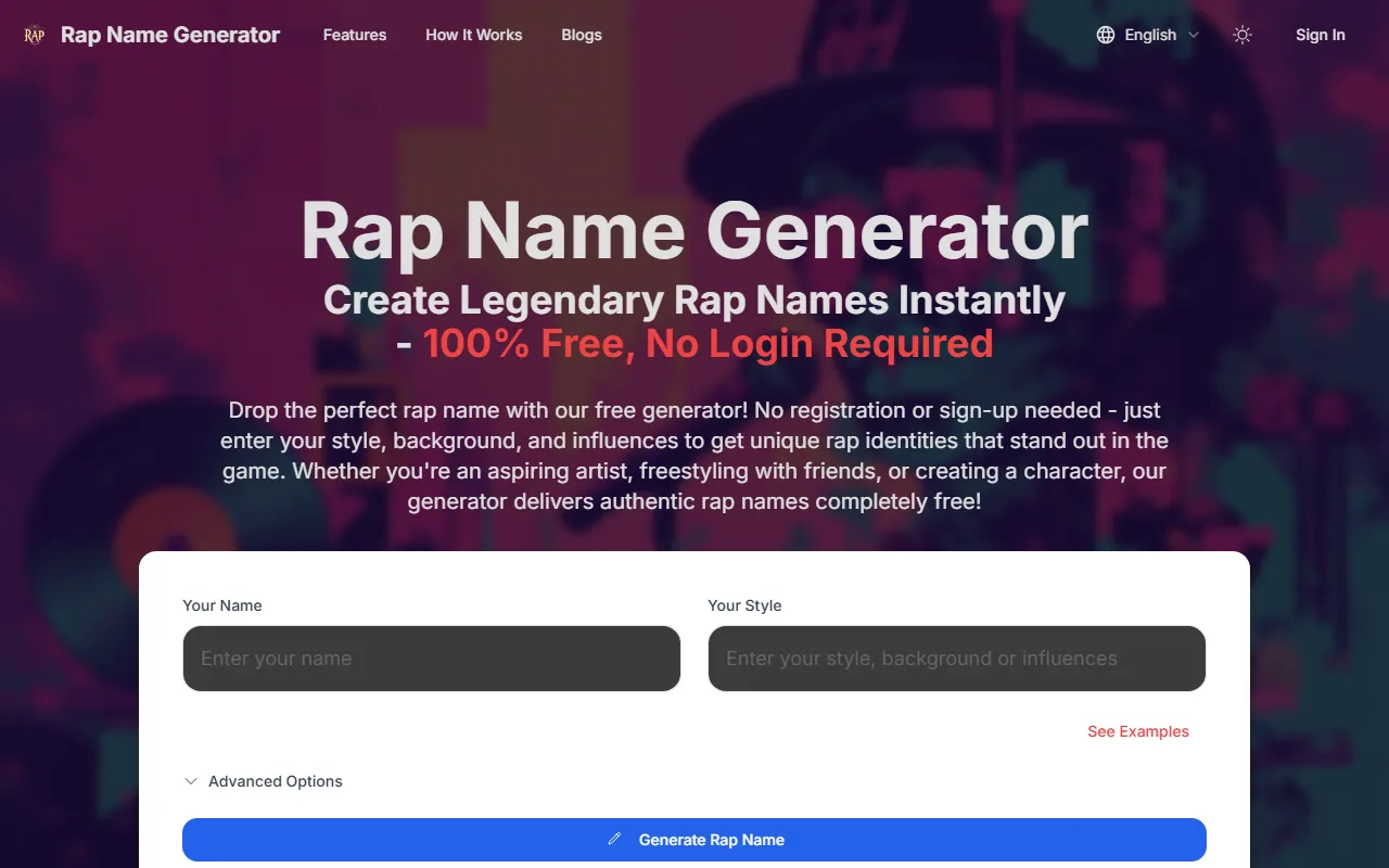 - Content generator: Rap Name Generator includes a dedicated content generator engine that processes your inputs intelligently. The system learns from each interaction, delivering increasingly personalized and accurate results the more you use it.