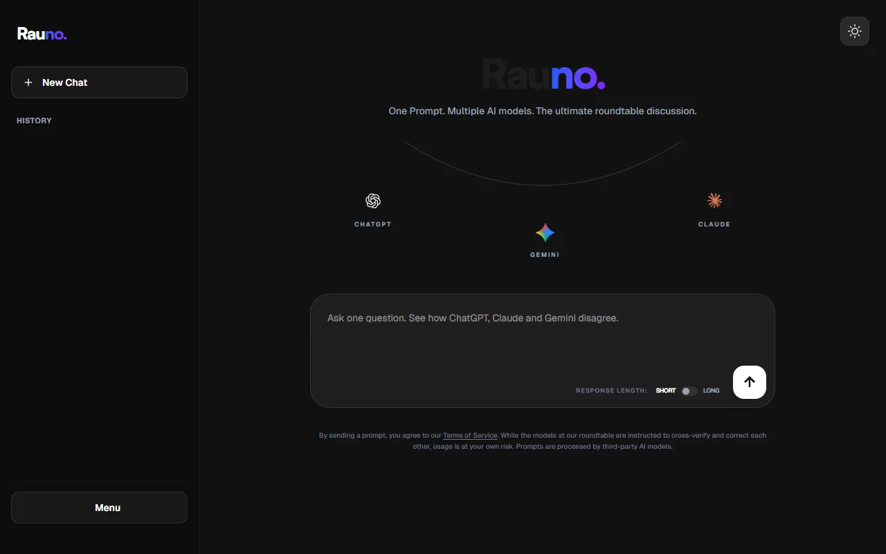 Rauno enables real-time debates among top AI models for accurate, refined answers.