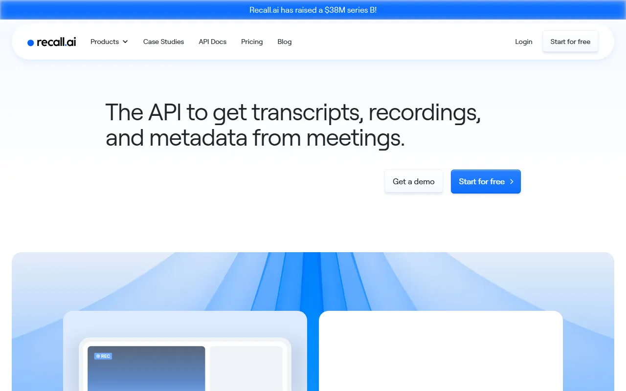 Recall.ai offers a unified API to capture, transcribe, and analyze virtual meeting recordings quickly.
