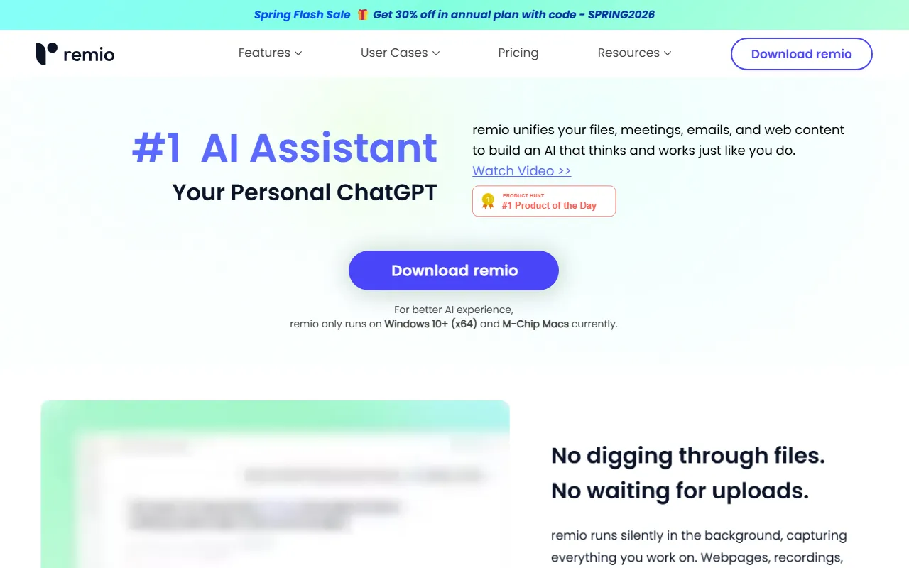 Remio: AI-powered personal knowledge manager with local storage, auto-capture, and smart search.