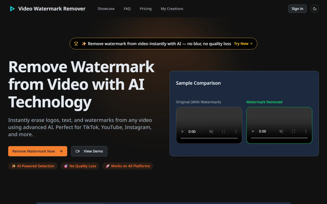 This comprehensive review examines what Remove Watermark from Video Online – AI Remover brings to the table, exploring its feature set, ideal use cases, pricing structure, and overall value proposition. Whether you are actively searching for an AI Image Generation solution or simply evaluating the landscape, this breakdown will help you determine if Remove Watermark from Video Online – AI Remover deserves a spot in your toolkit.