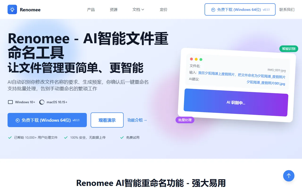 Renomee: AI-powered batch file renaming with smart content recognition and natural language rules.