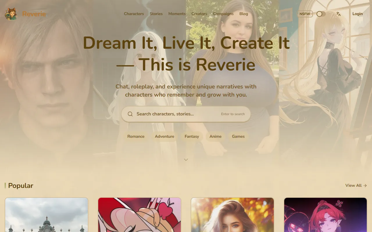 Reverie offers AI companions with long-term memory, customizable characters, and multimedia chats.