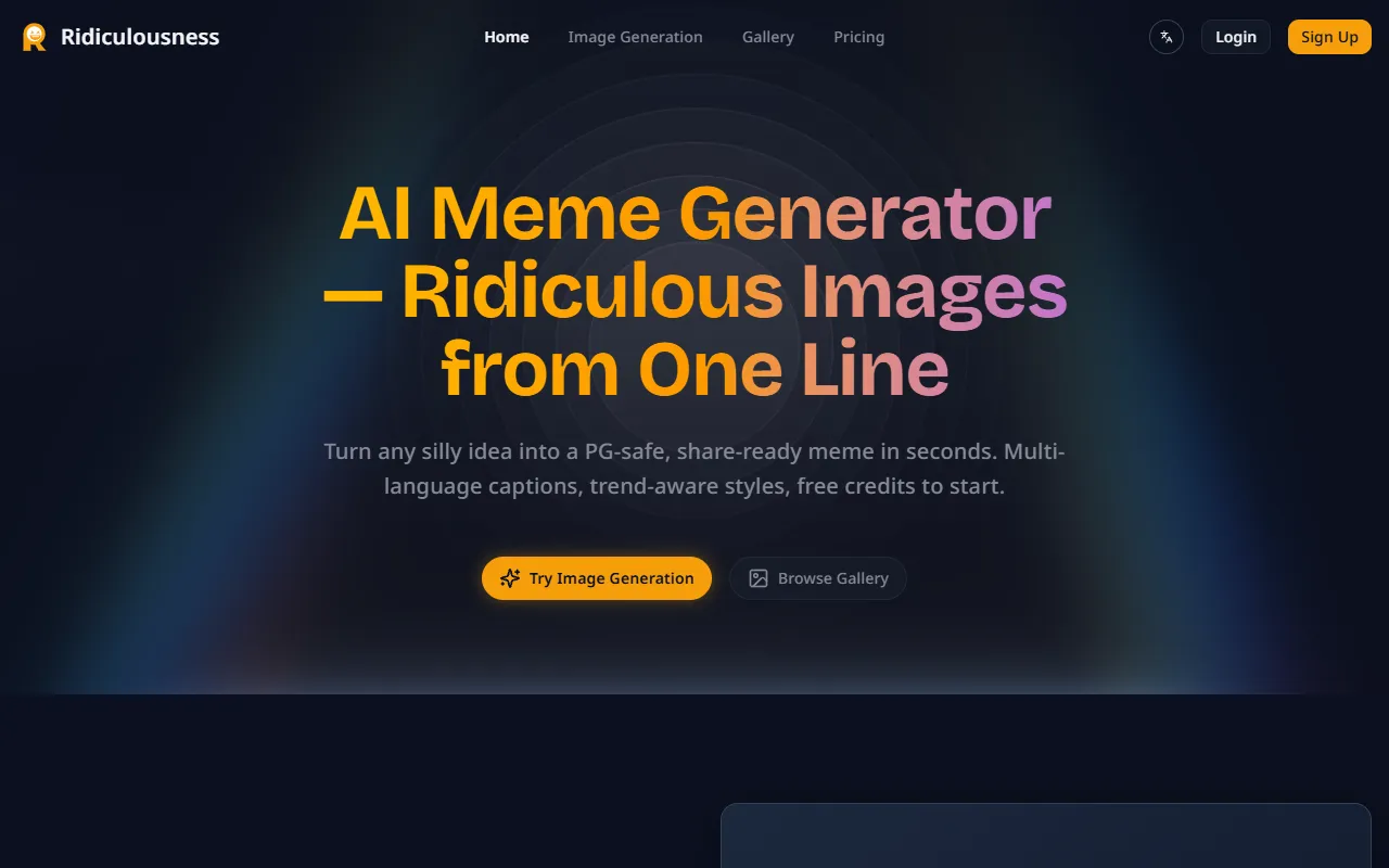 Ridiculousness.cc creates fast, PG-safe AI memes from text with customizable styles and captions.