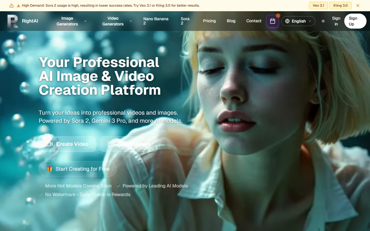 RightAI: Easy, fast AI content creator with top models, 4K images, cinematic videos.