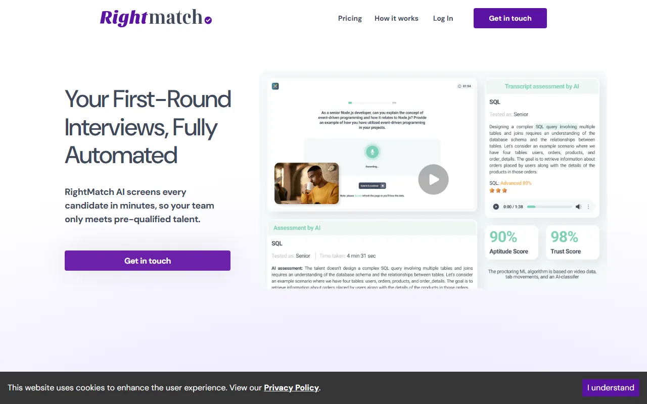 RightMatch AI streamlines hiring with multi-sensory, bias-free video interviews and detailed candidate reports.