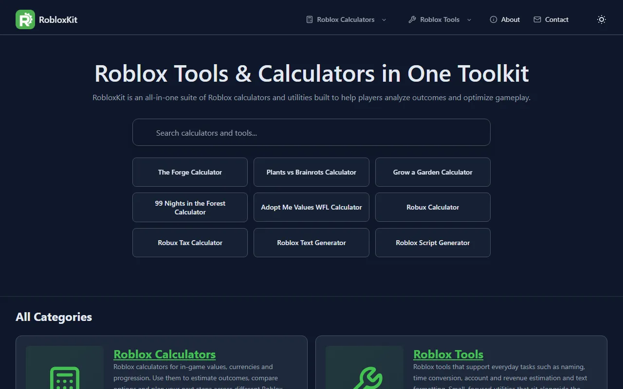 RobloxKit offers free calculators and tools to optimize gameplay and strategy across popular Roblox games.