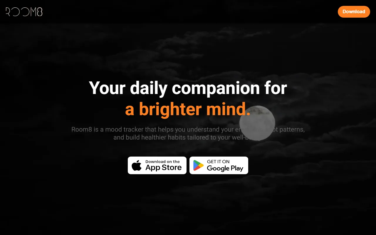 Room8: AI-powered mood tracker offering insights, creative reflections, and private emotional journaling.