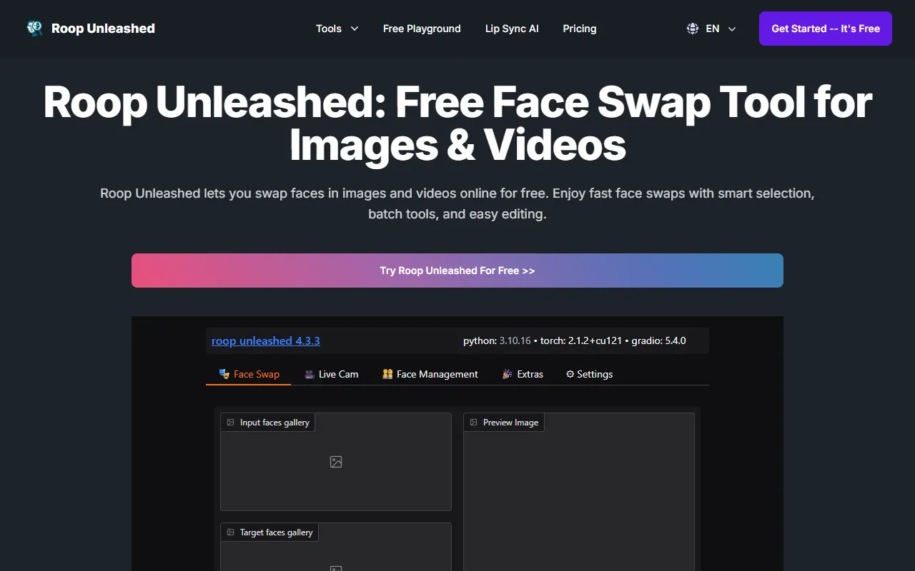 Roop Unleashed enters the AI Video arena as a purpose-built AI solution for video creators, filmmakers, and social media managers. Roop Unleashed: fast, realistic AI face swapping for images, videos, live cams—no training needed. In a market crowded with generic tools, Roop Unleashed distinguishes itself through its specialized focus on delivering measurable results in video production and editing and a user experience designed to get you productive from day one.