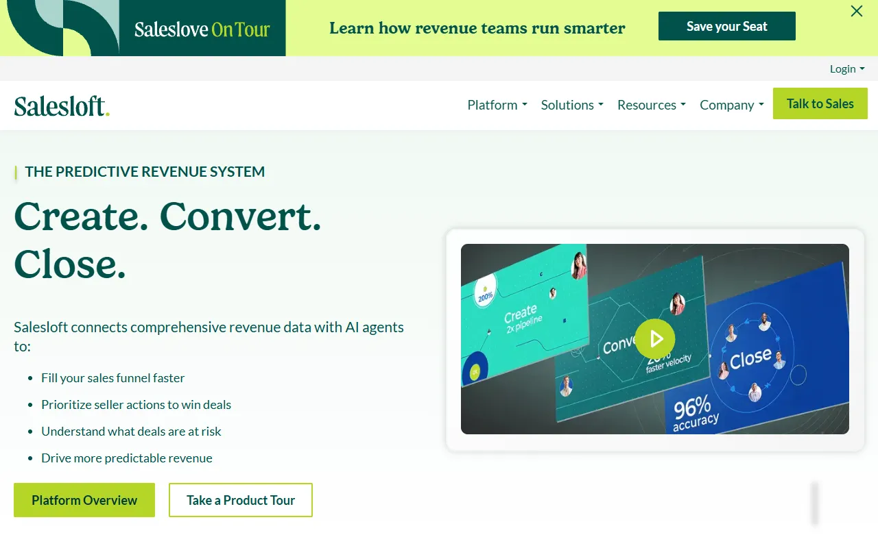 - Sales engagement: Salesloft provides robust sales engagement functionality, allowing users to assist with precision and efficiency. This feature is powered by advanced AI models that adapt to your specific use case and improve over time based on your interactions.