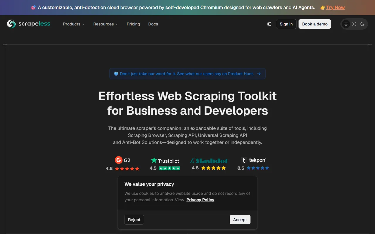Scrapeless is a strong contender in the productivity and workflow optimization space that warrants serious consideration. Its AI-driven approach to helping professionals, teams, and business leaders streamline more effectively is both practical and well-executed, backed by a user experience that respects your time and intelligence. The platform delivers on its core promises without overcomplicating the experience.