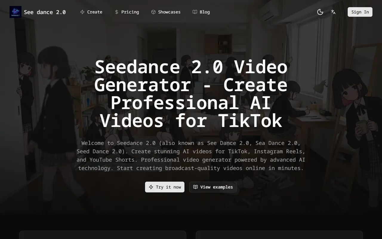 see dance 2 video enters the AI Video arena as a purpose-built AI solution for video creators, filmmakers, and social media managers. Seedance2 Video: AI-powered platform for fast, high-quality video creation with built-in billing and admin. In a market crowded with generic tools, see dance 2 video distinguishes itself through its specialized focus on delivering measurable results in video production and editing and a user experience designed to get you productive from day one.