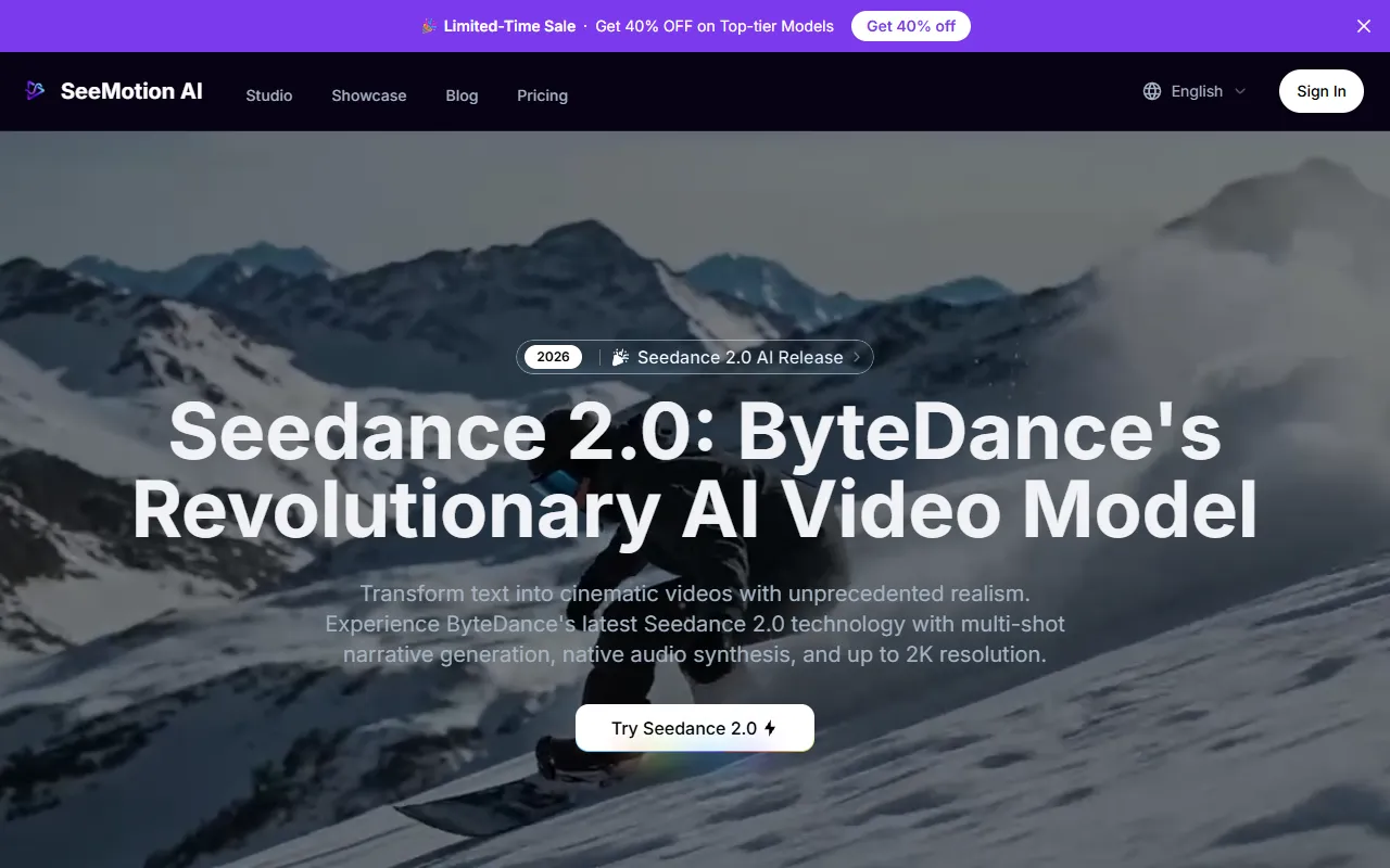 Seedance 2.0: AI-driven cinematic video creation with native audio, multi-shot narratives, and 2K resolution.