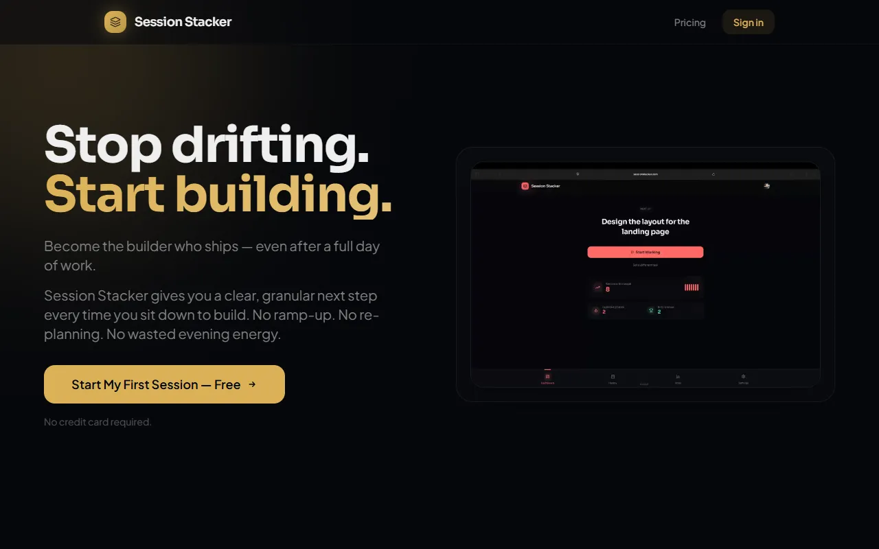 Session Stacker boosts side hustle productivity by tracking tasks and next steps with AI.