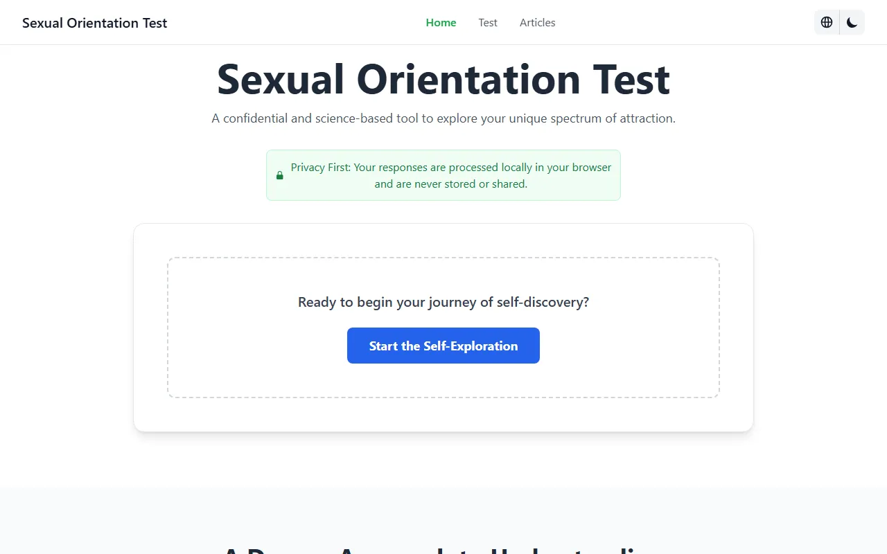 Free, private sexual orientation test using a deep, scientific model for personal insight.