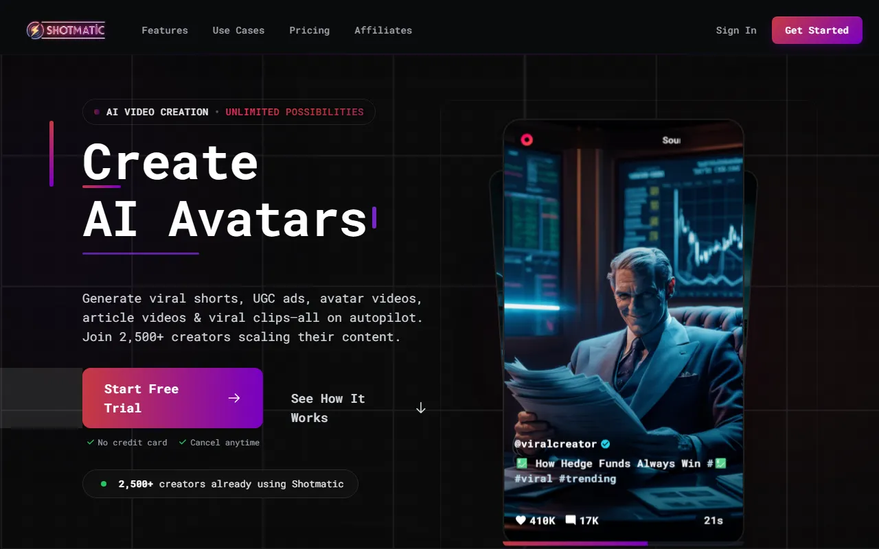 Shotmatic automates creating viral AI videos with voiceovers, captions, and multi-platform posting.