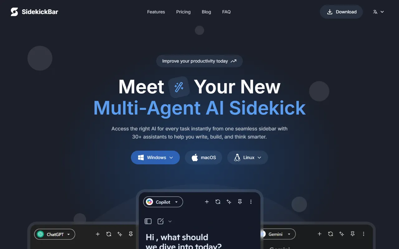 SidekickBar offers 30+ AI assistants in a sleek sidebar, boosting productivity seamlessly across Windows, macOS, and Linux.