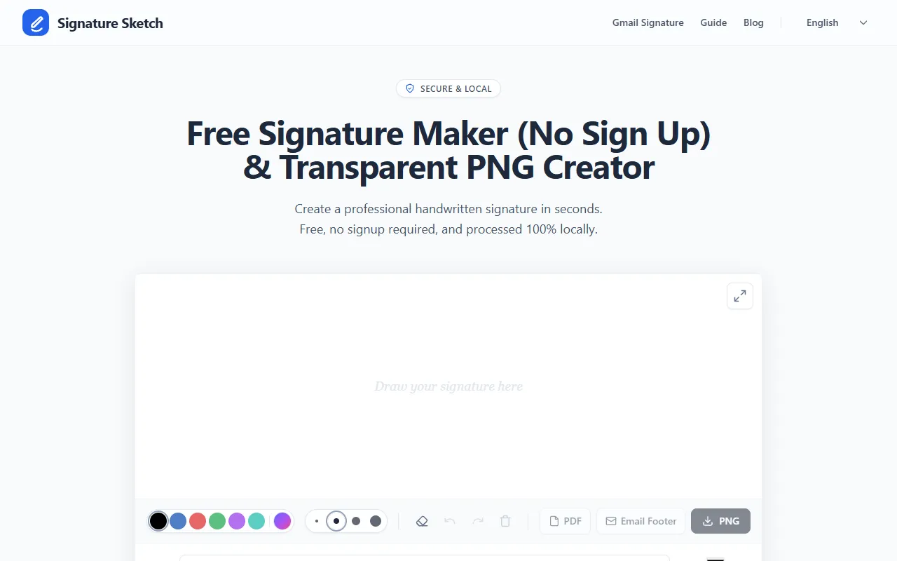 Signature Sketch instantly creates professional, privacy-safe handwritten signatures locally in your browser.