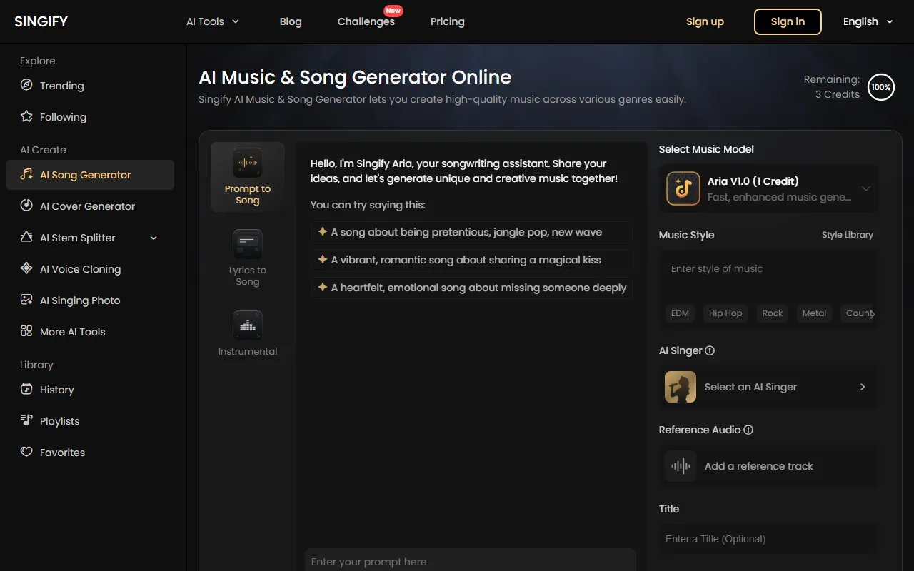 Singify: AI-powered platform to create, cover, remix, and extend music effortlessly online.