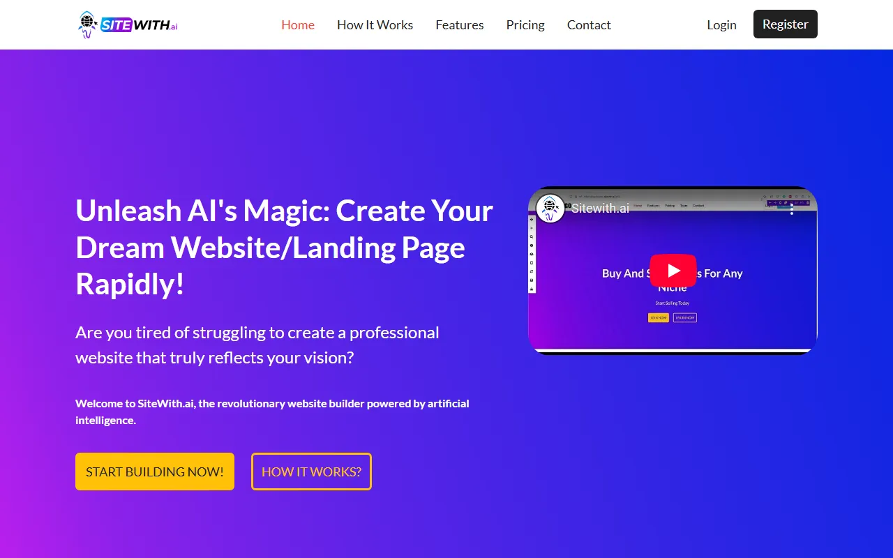 sitewith.ai enters the AI Marketing arena as a purpose-built AI solution for marketers, growth hackers, and brand managers. AI-powered website builder: Craft stunning, customizable pages swiftly without coding. Effortless, professional design for 2023. In a market crowded with generic tools, sitewith.ai distinguishes itself through its specialized focus on delivering measurable results in digital marketing and brand growth and a user experience designed to get you productive from day one.