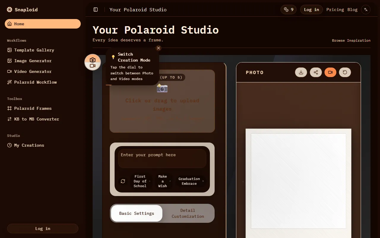 Snaploid transforms photos into animated vintage Polaroids with AI motion and film effects.