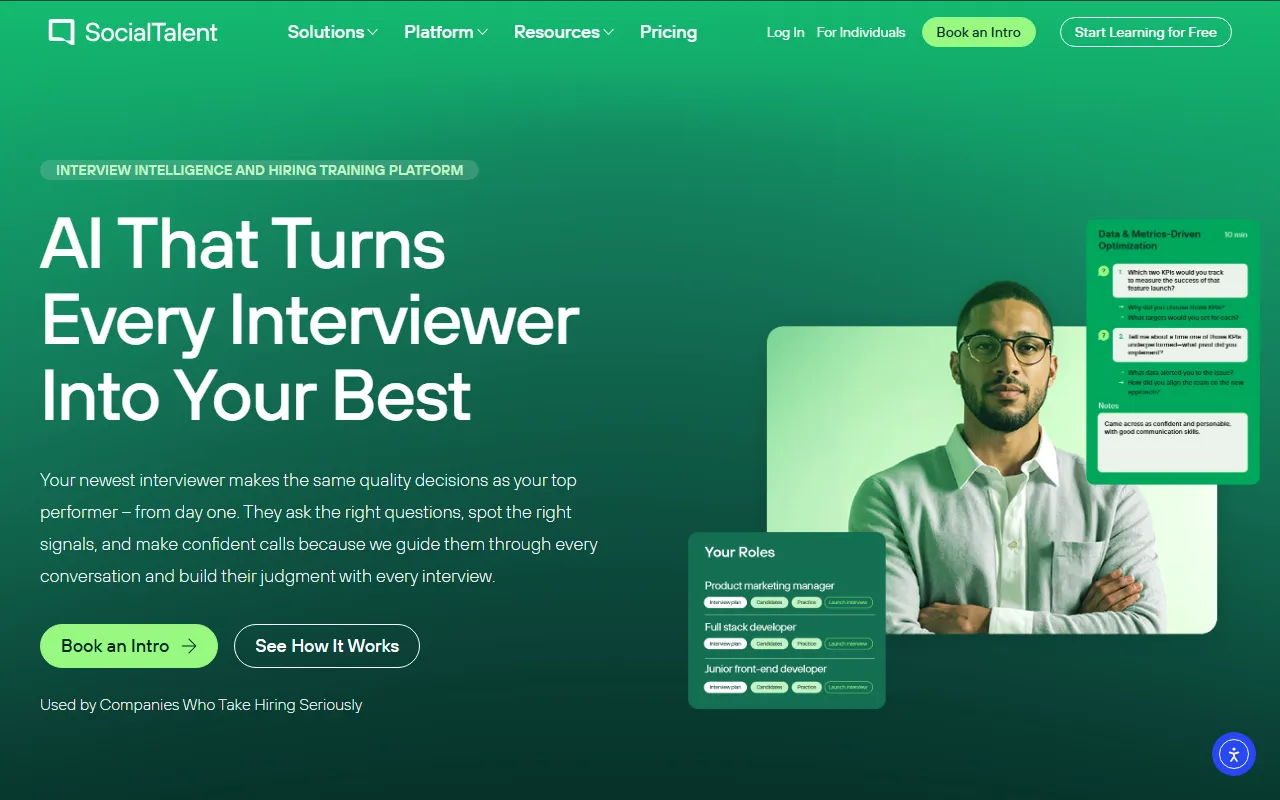 SocialTalent streamlines hiring with expert-led training, real-time guidance, bias-aware tools, and analytics.