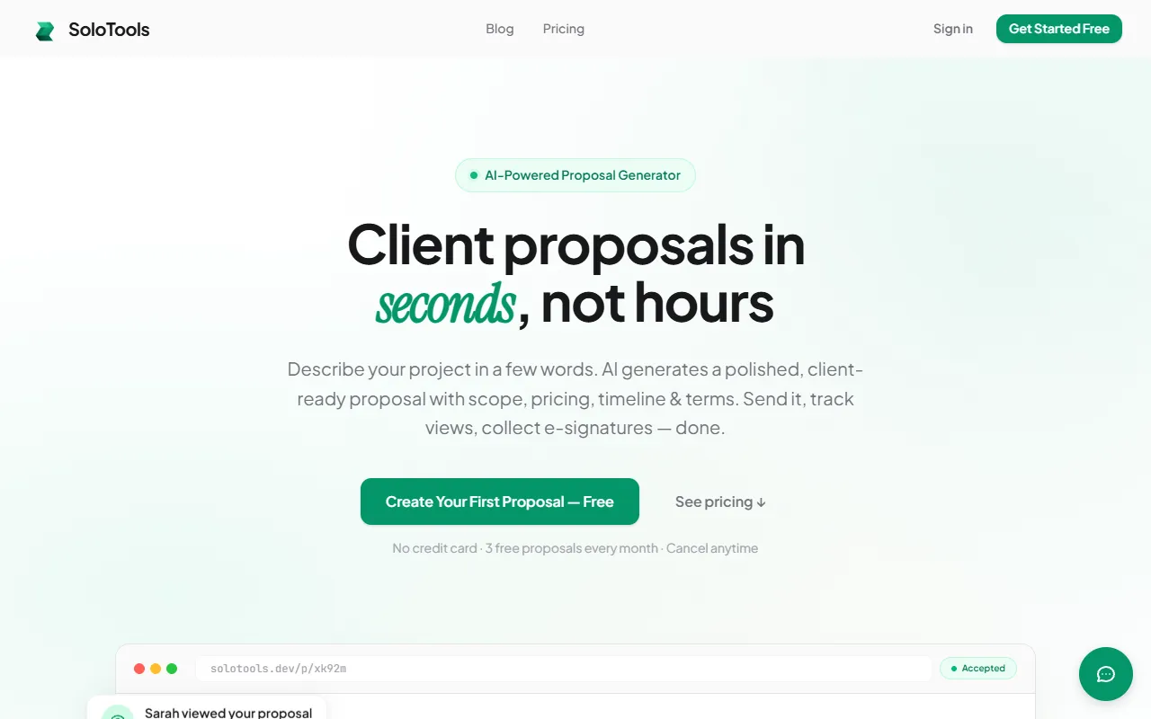 SoloTools quickly creates polished, editable proposals with pricing, timelines, and branding for freelancers.