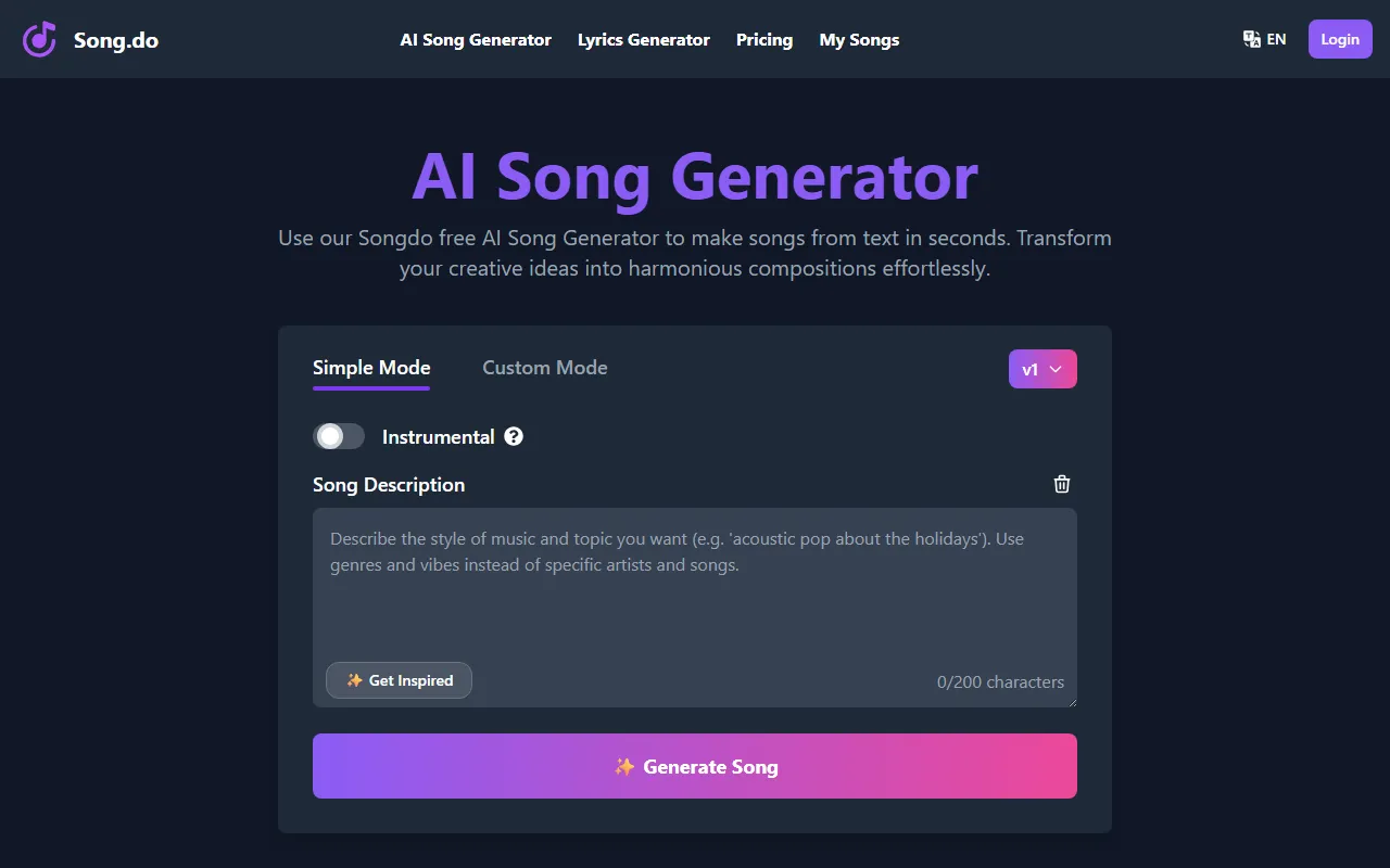 Generate harmonious songs from text in seconds with our free AI-powered Songdo tool.