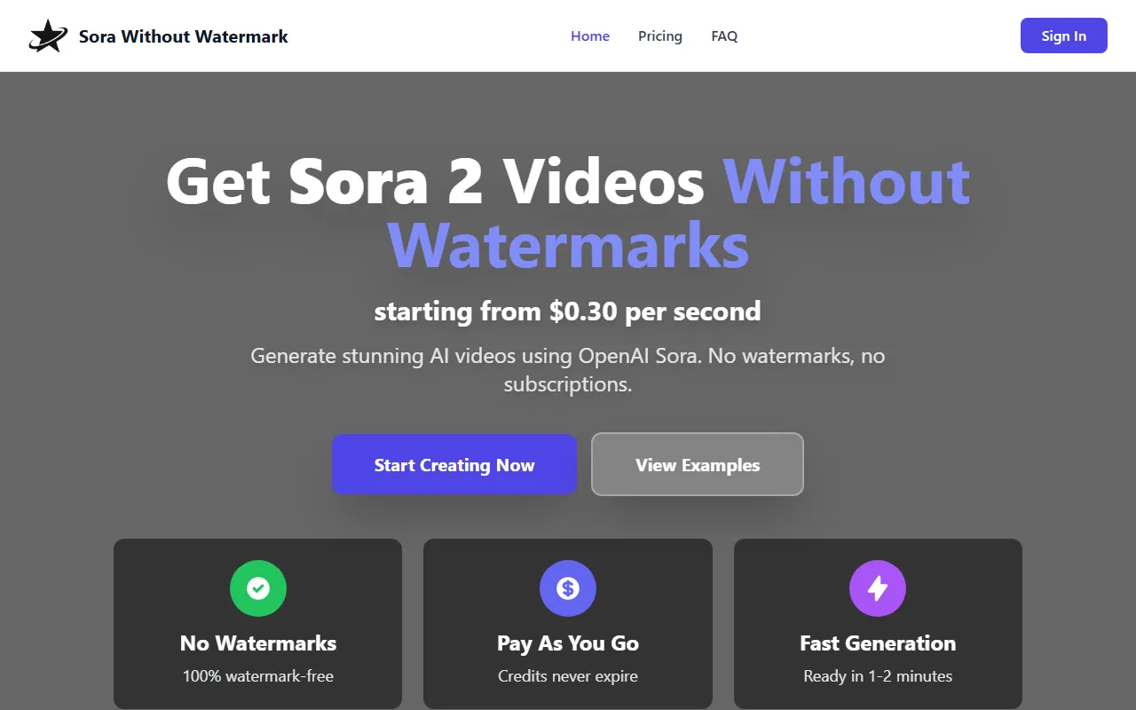 Sora Without Watermark—fast, affordable AI video creation with no watermarks and full customization.