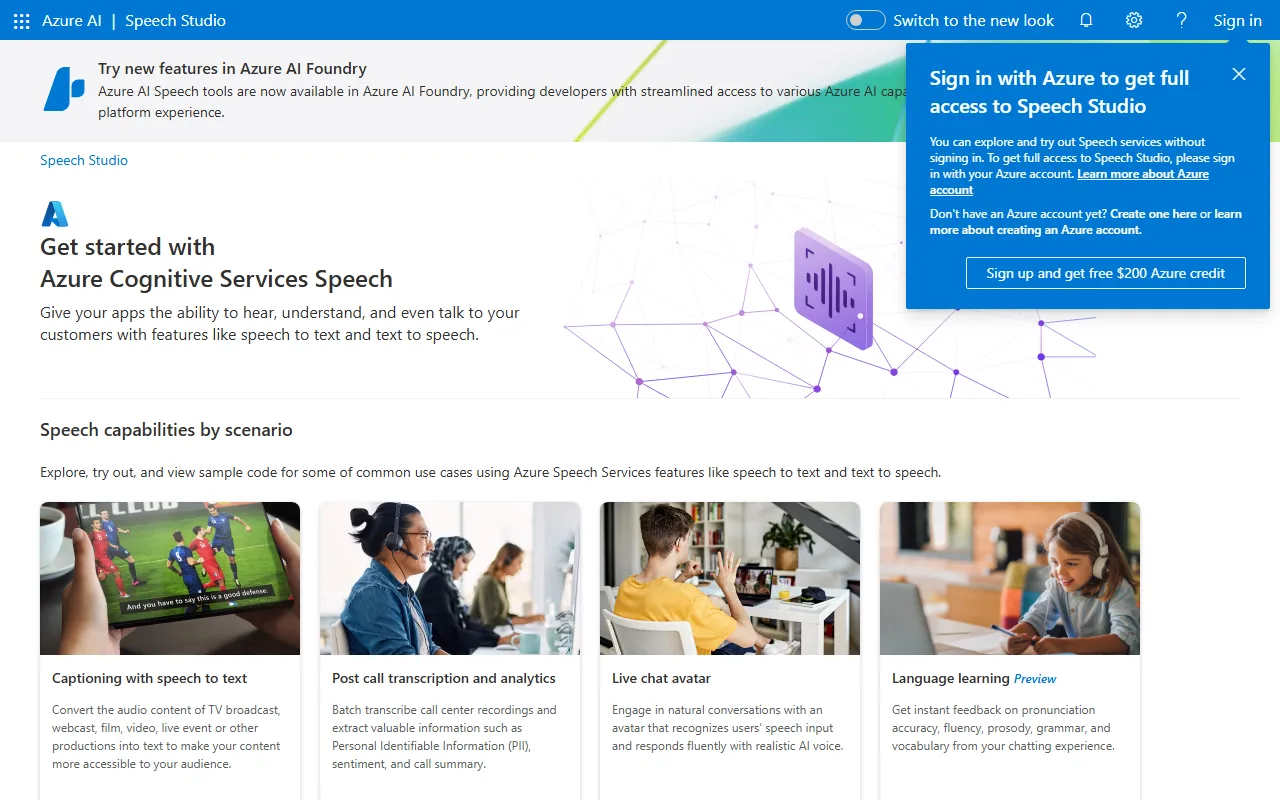 Starting with Speech Studio requires minimal setup. Create an account, complete the brief onboarding questionnaire, and you will be guided into a workspace tailored to your needs. Visit the official website to create your account and explore the platform firsthand. The platform detects your use case and suggests relevant features and workflows, so even complete beginners can find their footing quickly.