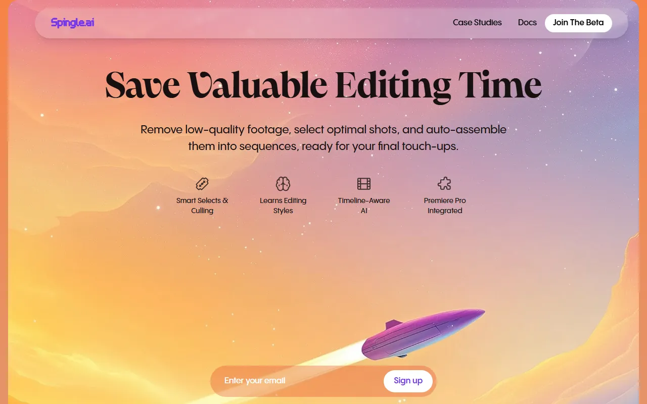 Spingle AI smartly automates Premiere Pro editing—selects best clips, removes flaws, sparks creativity.