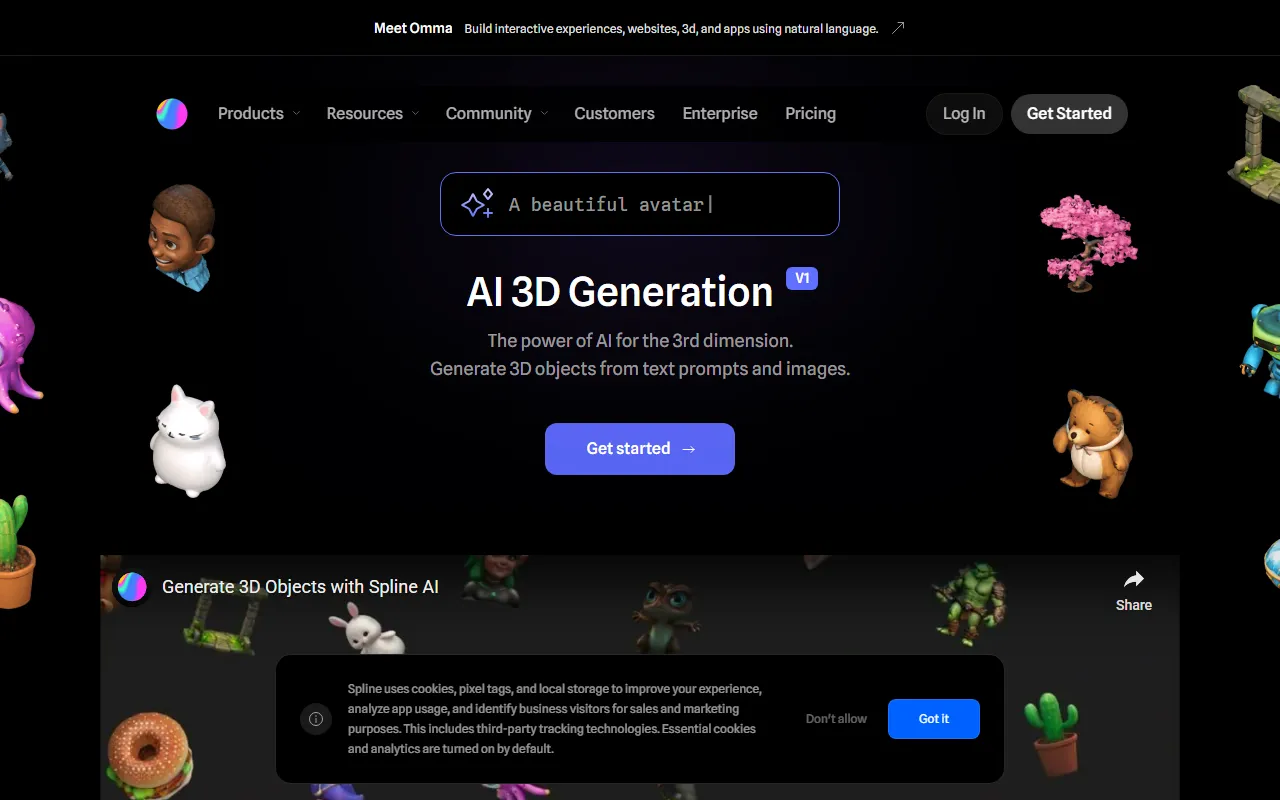 AI-driven 3D modeling tool enabling seamless textures, animations, and collaborative designs using simple text prompts.
