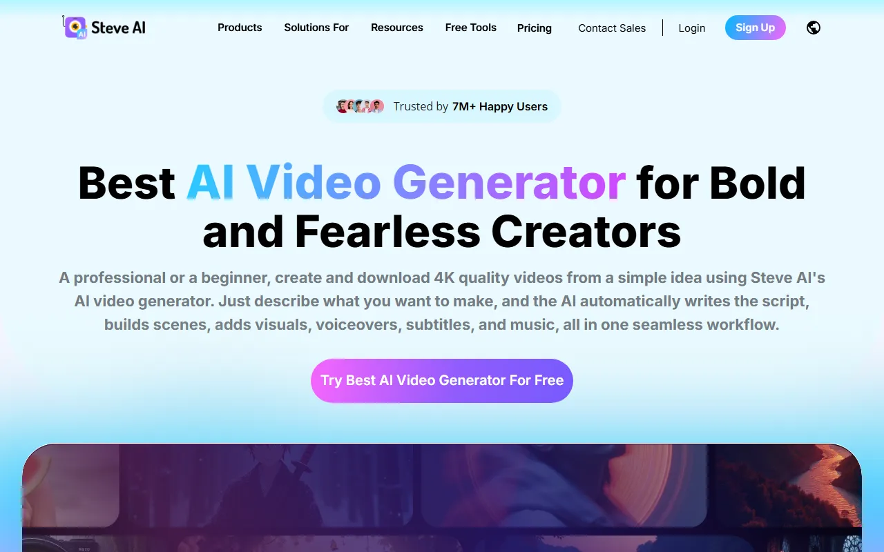 - AI video creation: Steve AI provides robust ai video creation functionality, allowing users to optimize with precision and efficiency. This feature is powered by advanced AI models that adapt to your specific use case and improve over time based on your interactions.