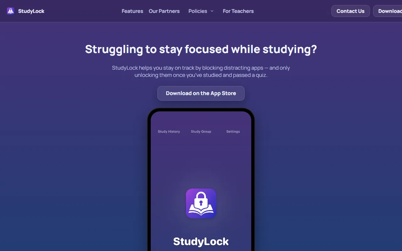 StudyLock boosts focus by blocking distracting apps until users study and pass quizzes.