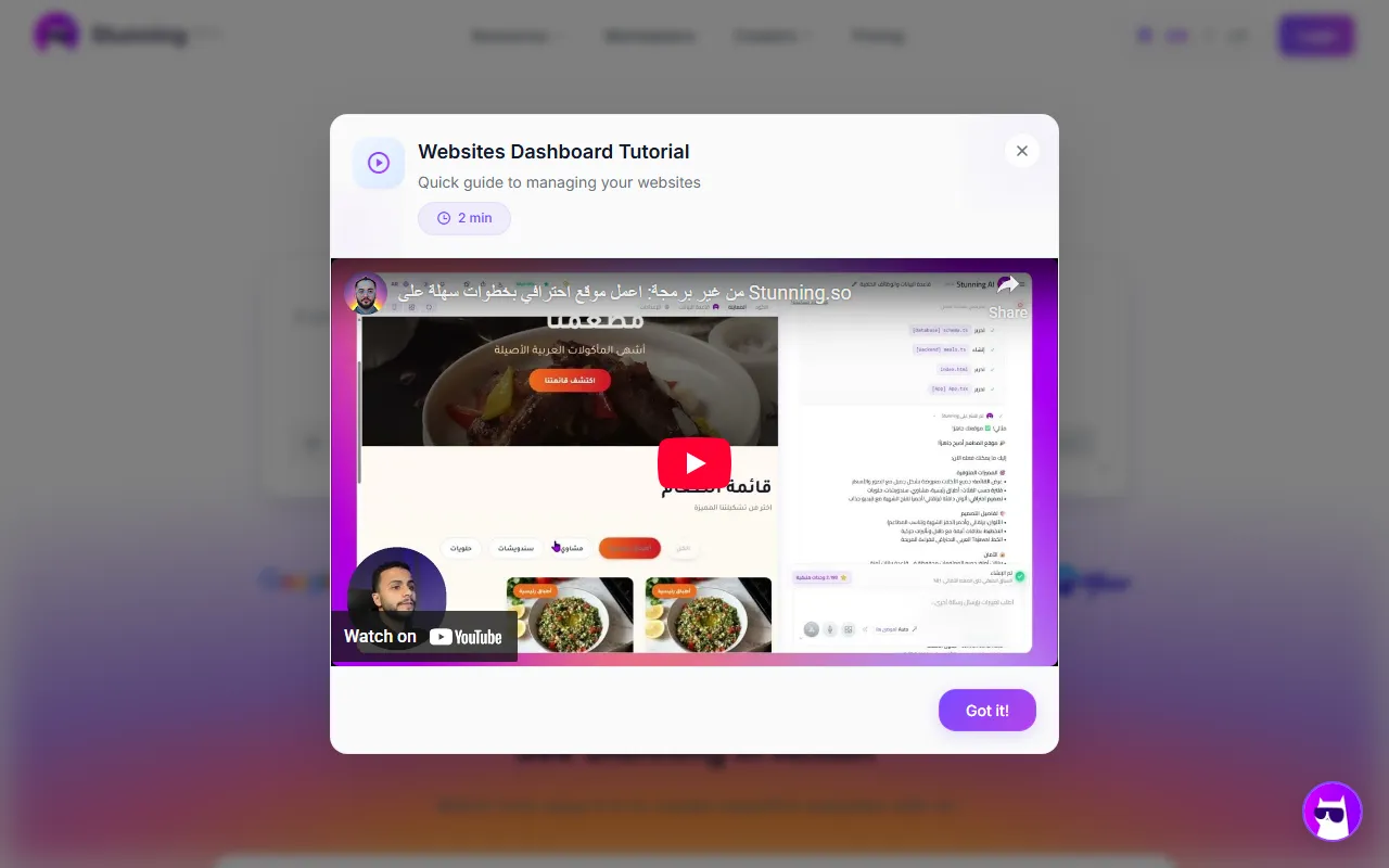 - Website Builder: Stunning includes a dedicated website builder engine that processes your inputs intelligently. The system learns from each interaction, delivering increasingly personalized and accurate results the more you use it.