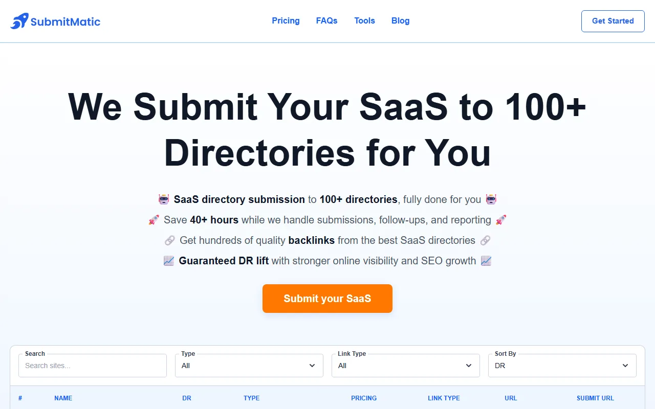 SubmitMatic automates SaaS submissions to 100+ directories, boosting SEO, traffic, and credibility effortlessly.