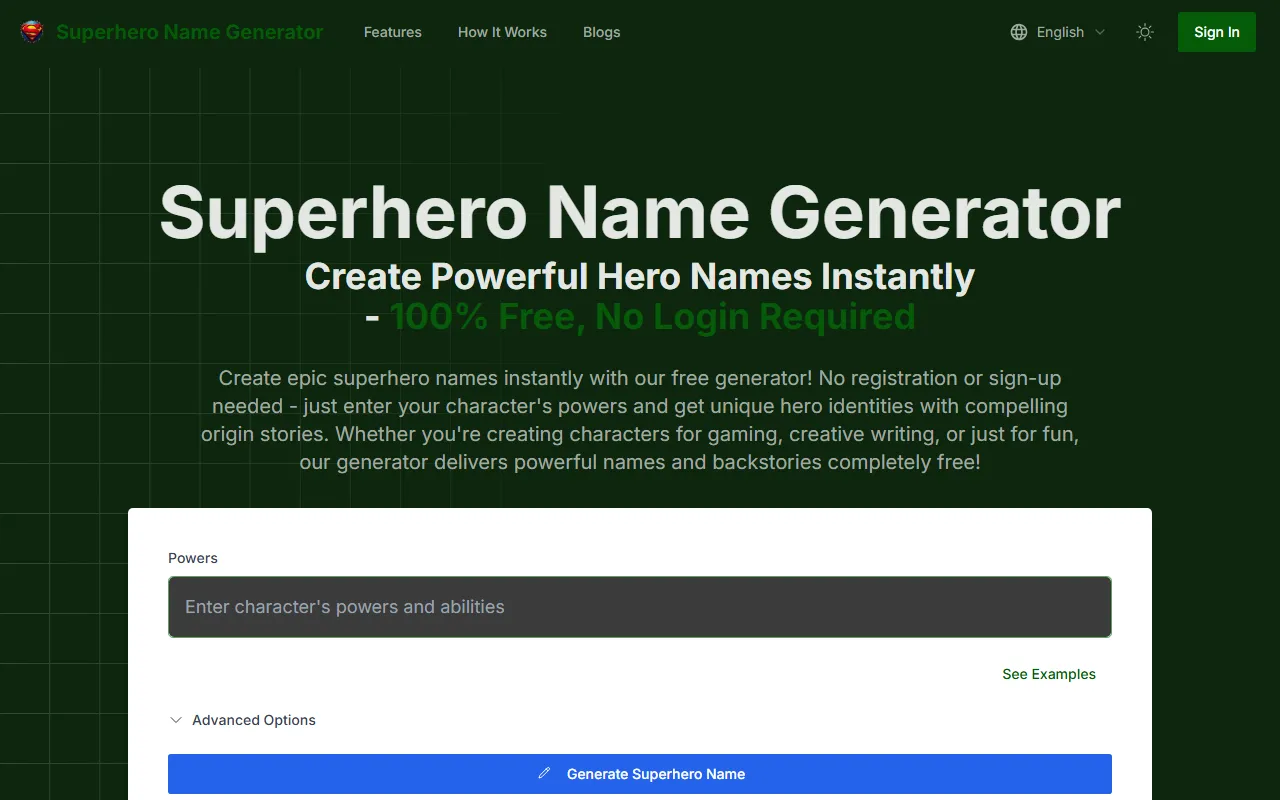 For writers, marketers, and content creators seeking smarter ways to handle content creation and writing, Superhero Name Generator presents an intriguing proposition. Generates unique superhero names matching powers and personality for writers and gamers. The platform aims to bridge the gap between complex AI technology and practical, everyday utility, making advanced capabilities accessible without requiring deep technical expertise.