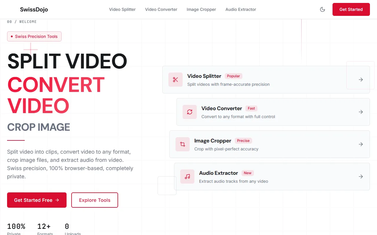 SwissDojo: Free, privacy-focused browser tools for fast, offline video and image editing.